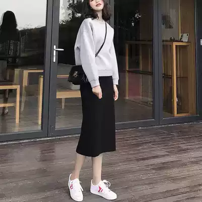 Pregnant women's skirt autumn and winter Korean version of the long version of the hip summer dress one-step skirt fashion tide mother Spring and Autumn belly fashion