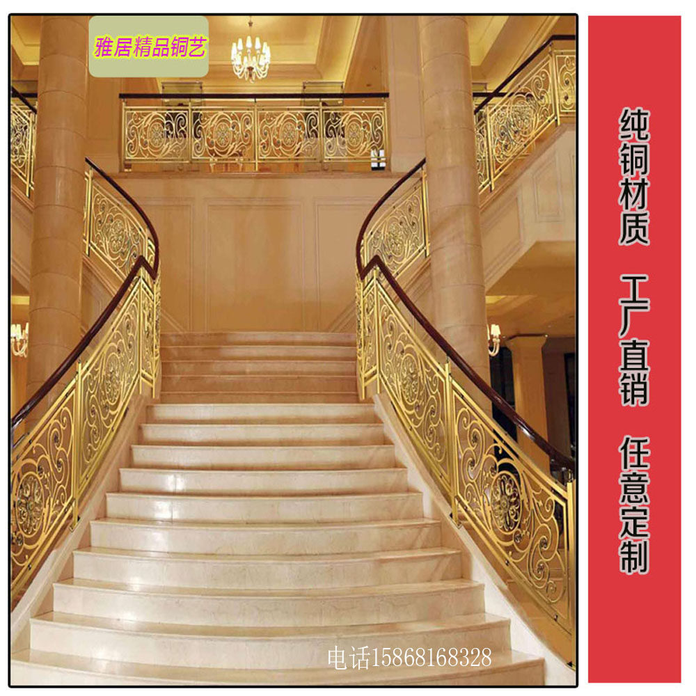 Villa Stairway Armrest Copper Guardrails Hotel Clubhouse Mansion Indoor Duplex brief modern balcony railings New products