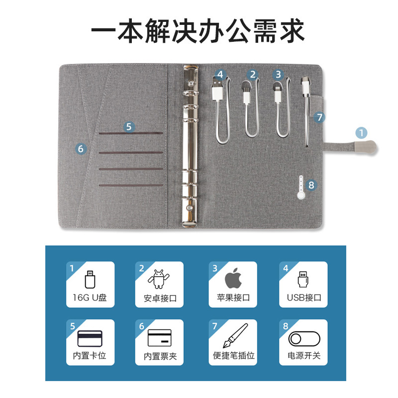 Multifunction Business notebook Sub-charge creative with mobile Notepad Enterprise Custom print LOGO gift box set of courtesy office A5 loose-leaf This action Power notepad