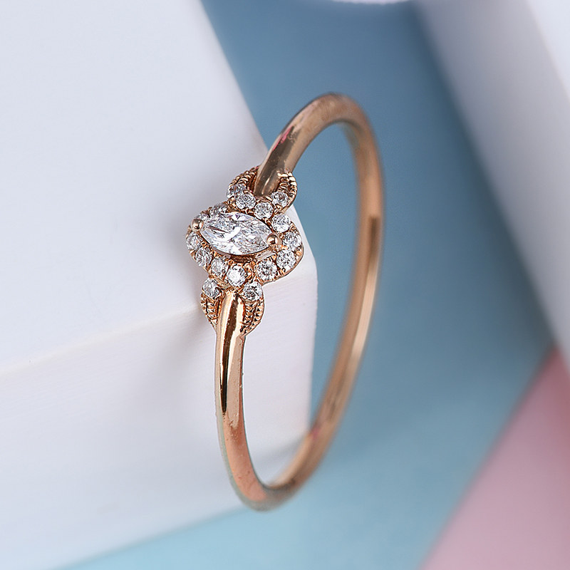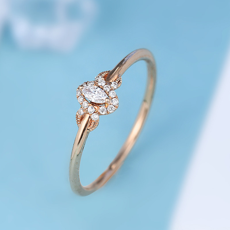 18K rose gold diamond ring female horse eye drill ring custom platinum GIA nude drill for wedding ring minimalist group inlaid