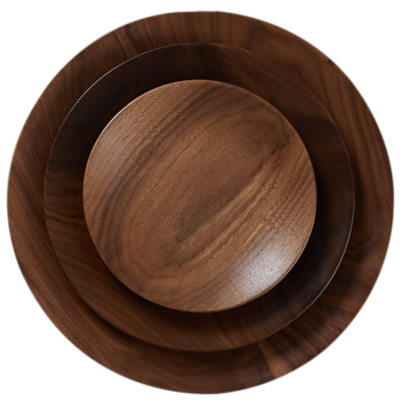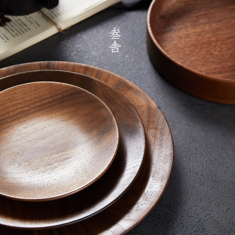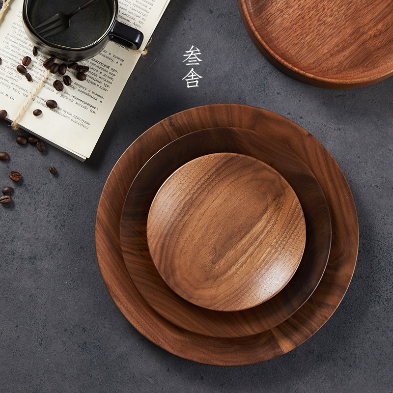 Sanshe sushi cooking plate black walnut Japanese solid wood dessert round Korean wooden nut plate dried fruit plate D2