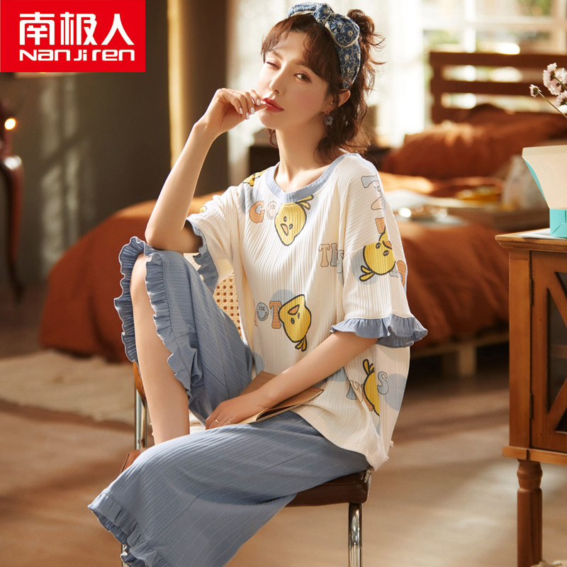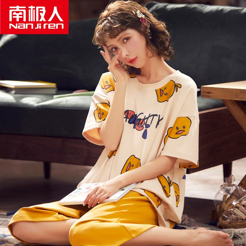Antarctic pajamas women's summer pure cotton short-sleeved three-point pants two-piece suit Korean version of cute student thin section home clothes