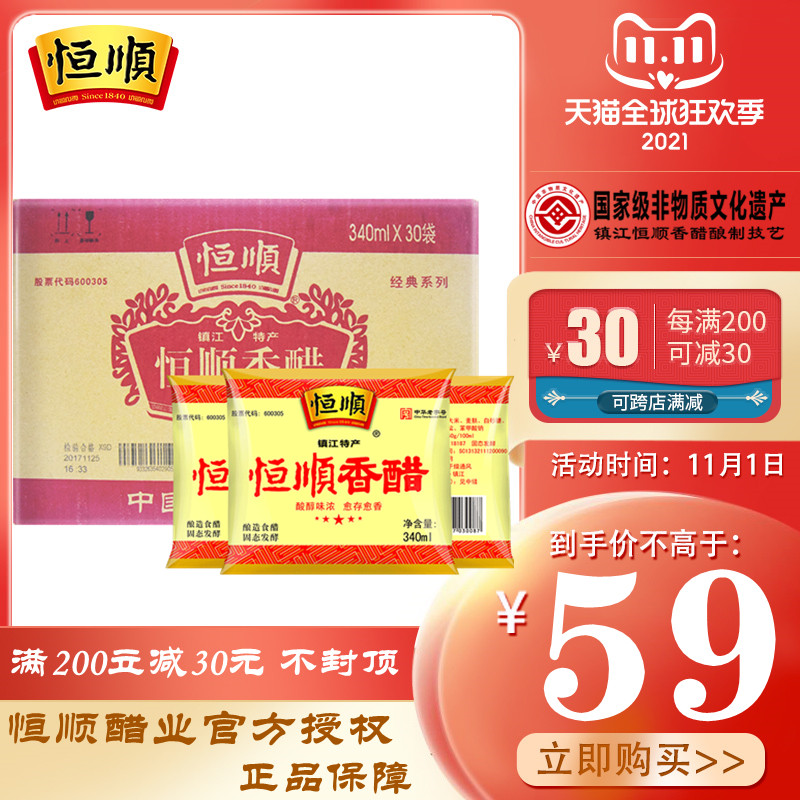 Zhenjiang Hengshun bag balsamic vinegar 340ml * 30 bags brew vinegar stir-fry cold mix seasoning point dipped in dumplings