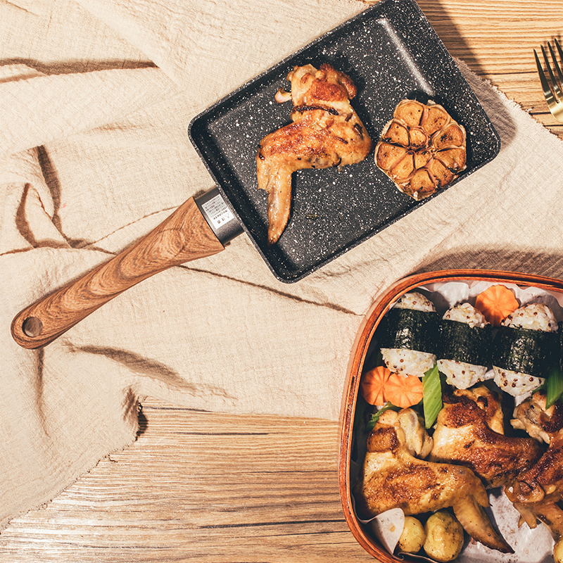 Day Style Jade Burning Small Frying Pan Breakfast Pan medical stone Egg Roll Fried Egg steak Thick Egg Burning Square Flat Bottom without dipping into the pan
