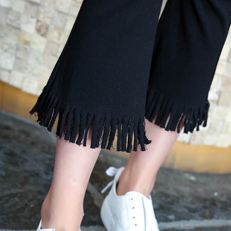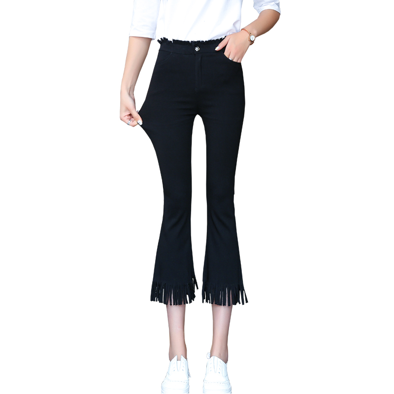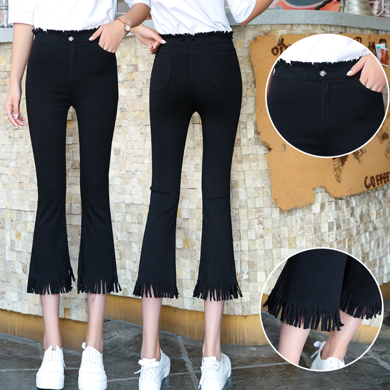 Fringed flared pants women's 2020 new summer high waist wear pants slightly thin seven black pants