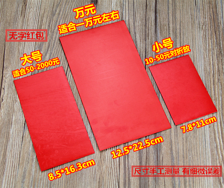 6 red envelopes of 10,000 yuan (suitable for about 10,000 yuan) 30 large red envelopes (suitable for 50-2,000 yuan) 60 small red envelopes (10-50 yuan folded in half) 12 red envelopes of 10,000 yuan (