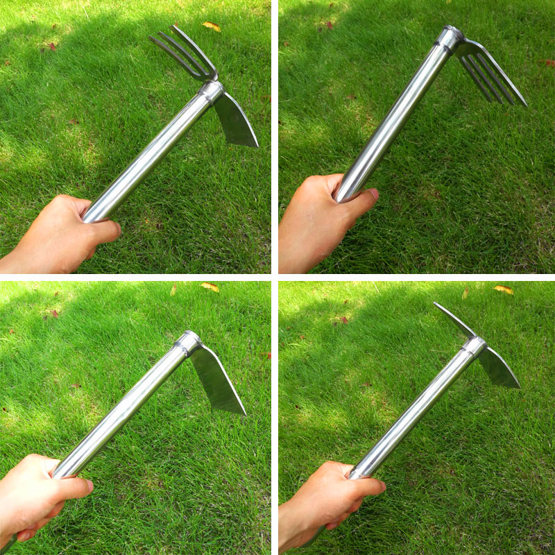 Stainless steel gardening hoe, stainless steel gardening rake, stainless steel gardening pick, stainless steel hoe and rake