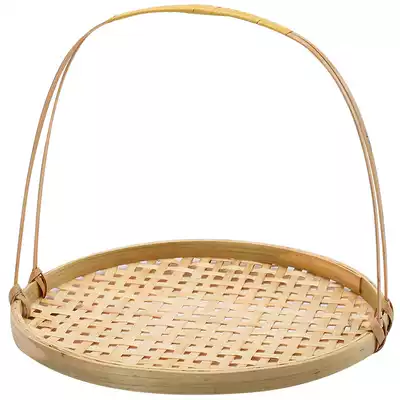 Bamboo dim sum basket hollow bamboo basket living room basket pastoral wind flat bottom round dustpan storage mini home small fruit basket