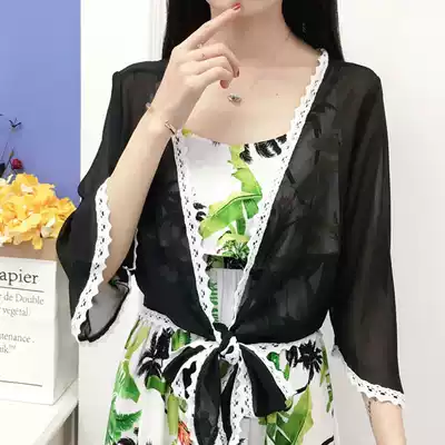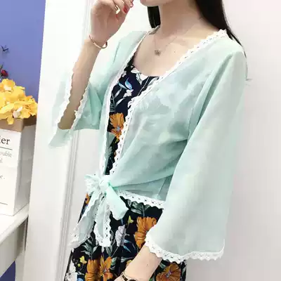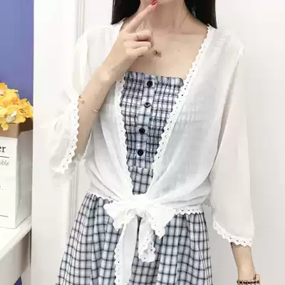 2021 summer short chiffon thin sunscreen cardigan women's top fairy jacket shawl blouse all-match thin air conditioning shirt