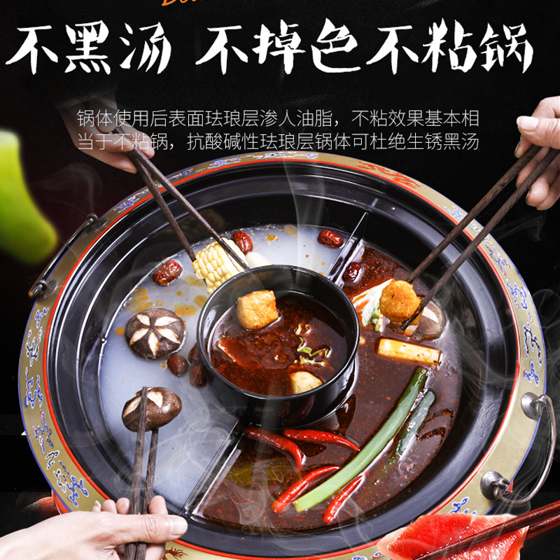 Hot pot pot commercial special enamel enamel hot pot pot induction cooker Yuanyangzimu three-flavor pot hotpot shop special pot
