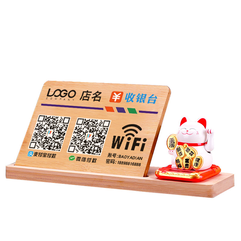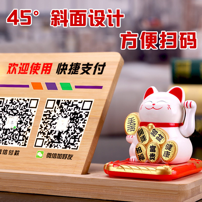Solid wood printing WeChat merchant sweep-code payment card Official two-dimensional code sweep a sweep collection payment reminder ID card Alipay collection of money standing card display card collection silver counter Merchants and cat table hem