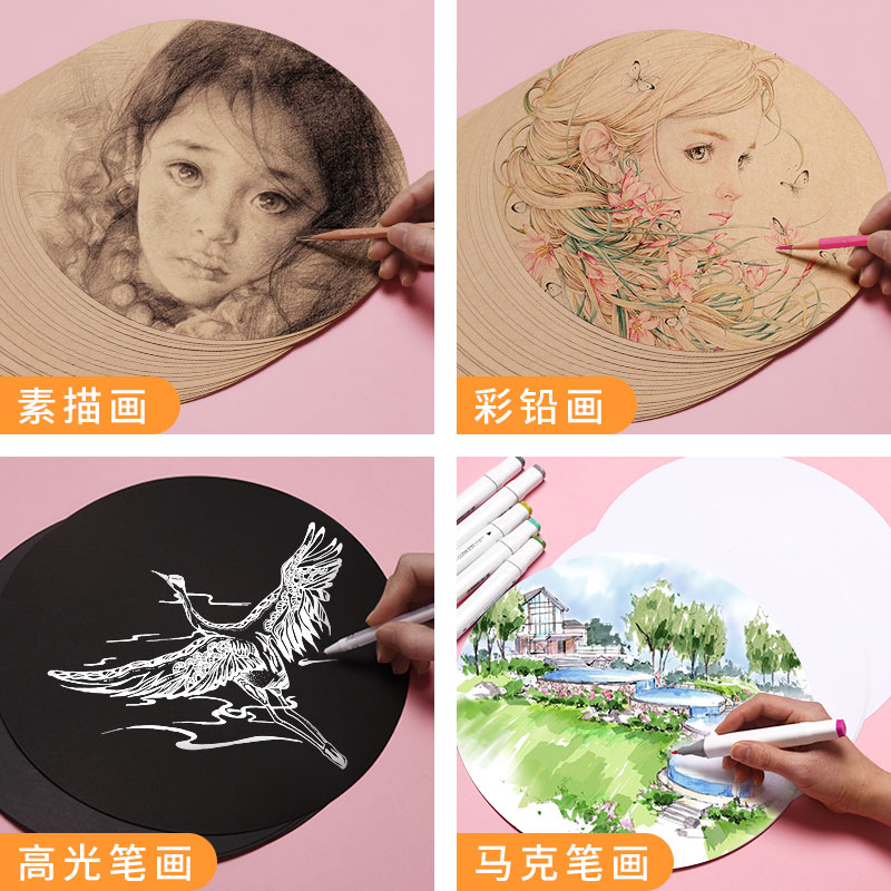 Yuan Hao Round Cardboard Kraft White Cardboard Black Cardboard Painting Netherlands White Cardboard Children's Kindergarten Sketch Drawing Art Diy Handmade Cardboard Thickened Double Sided Paper Round Cardboard