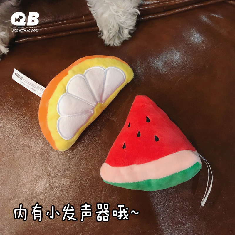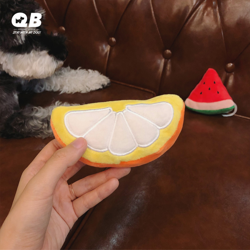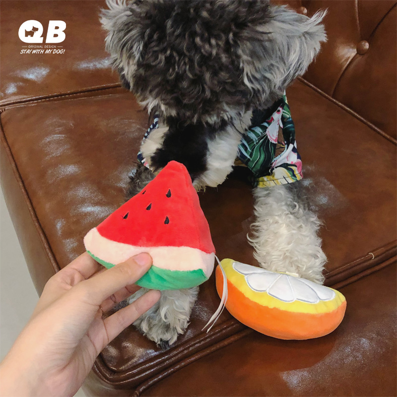QB Cute Fruit Sound Toy Schnauzer Teddy Small Dog Puppies Toy Teeth Cleaning Plush Toy