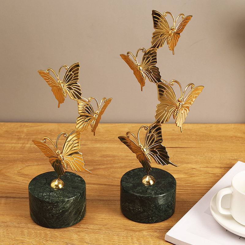 Brass Marble Base Simulation Butterfly Ornament Home Decoration Ornament Living Room Entrance Decoration Housewarming Gift
