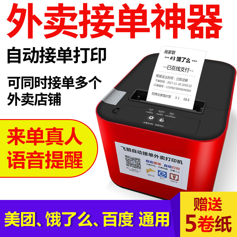 Flying goose printer takeaway special meituan are hungry so many platform orders fully automatic order receiving artifact with voice real person reminder wifi bluetooth universal moth single machine 57x50 thermal paper