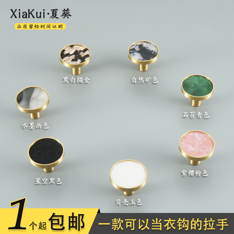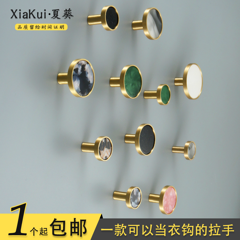 Pure copper cabinet door handle light lavish Nordic overall cabinet drawers modern minimalist single-hole creative clothes hook shells brass handles