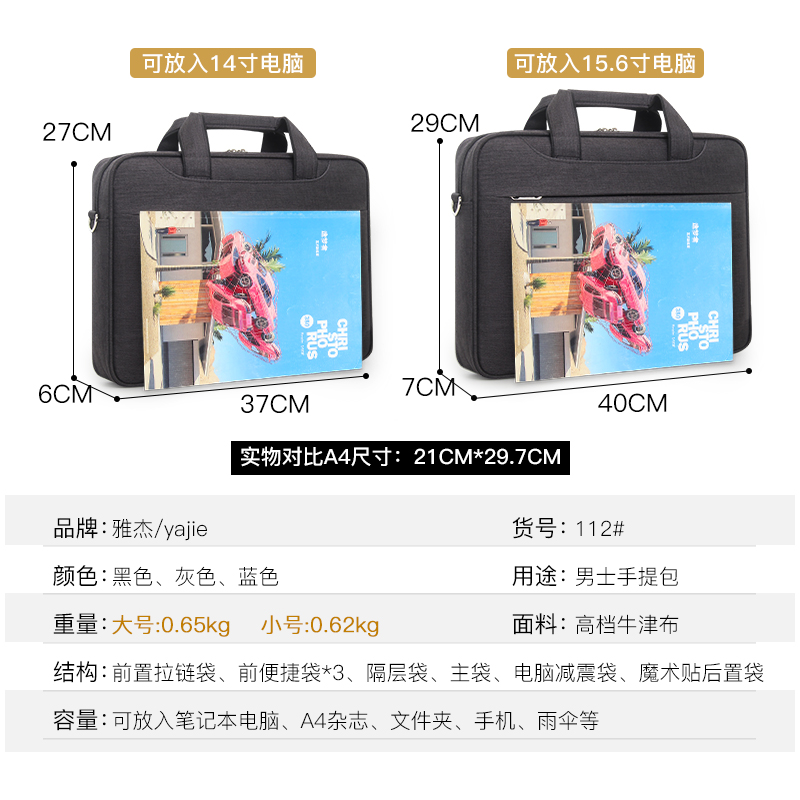 Men's 14-inch computer bag 15 6-inch Oxford cloth handbag shockproof notebook bag business style shoulder bag diagonal