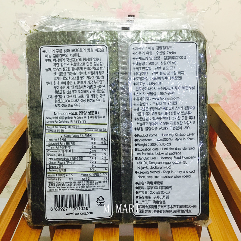 (10 packs)Korea imported Hainong roasted seaweed Commercial seaweed bag rice seaweed 100 Zhang Hainong