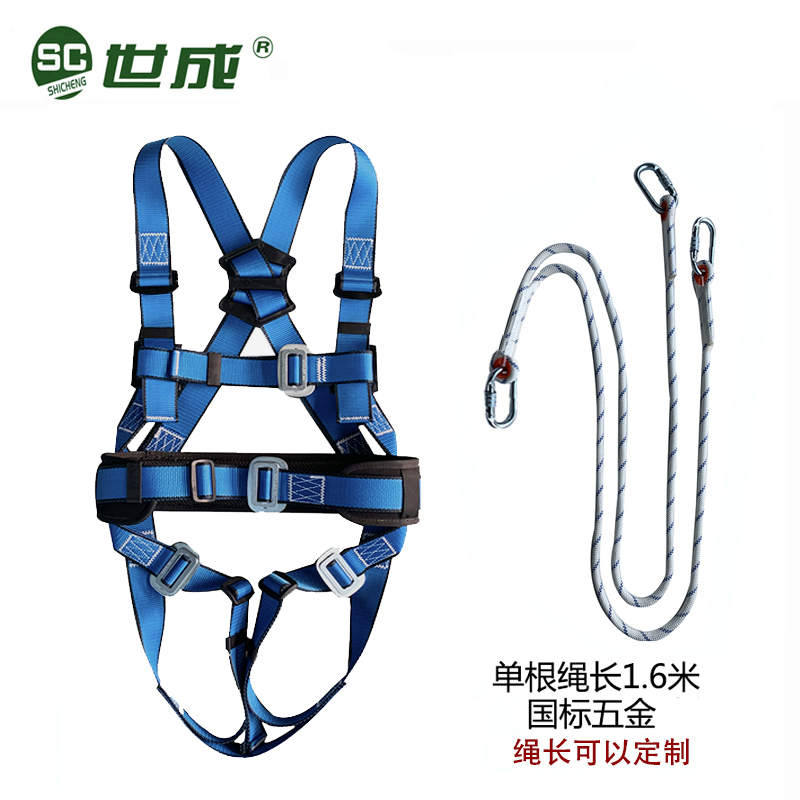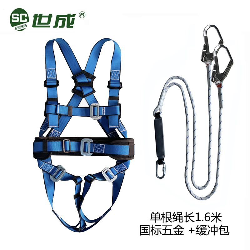 Shicheng five-point seat belt aerial work safety rope wear-resistant full body safety rope double hook anti-fall set