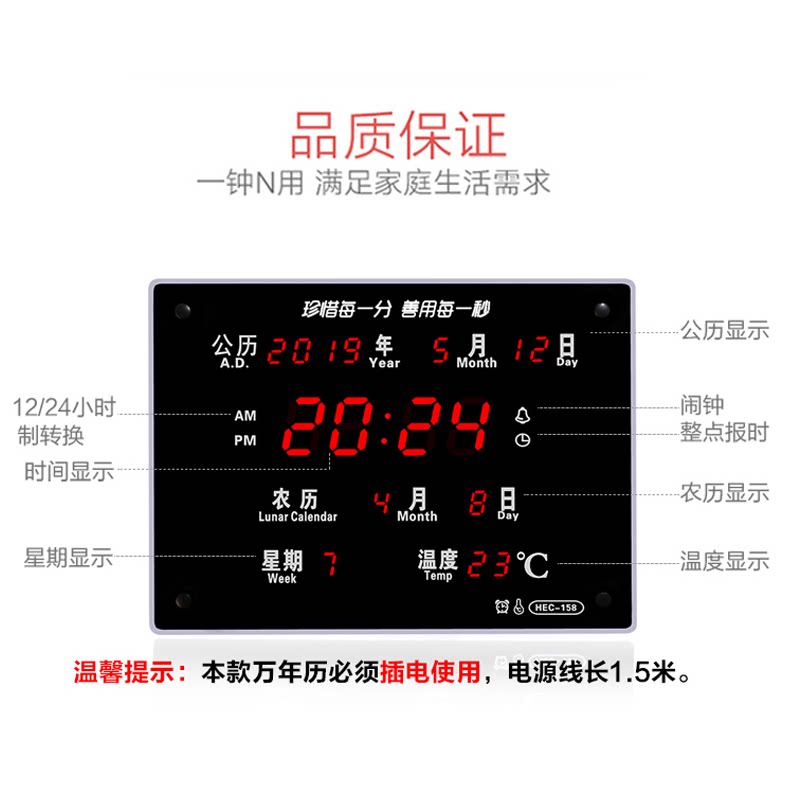Hechuang perpetual calendar Home mobile phone time synchronization electronic clock Wall clock Living room wireless Bluetooth timing calendar clock