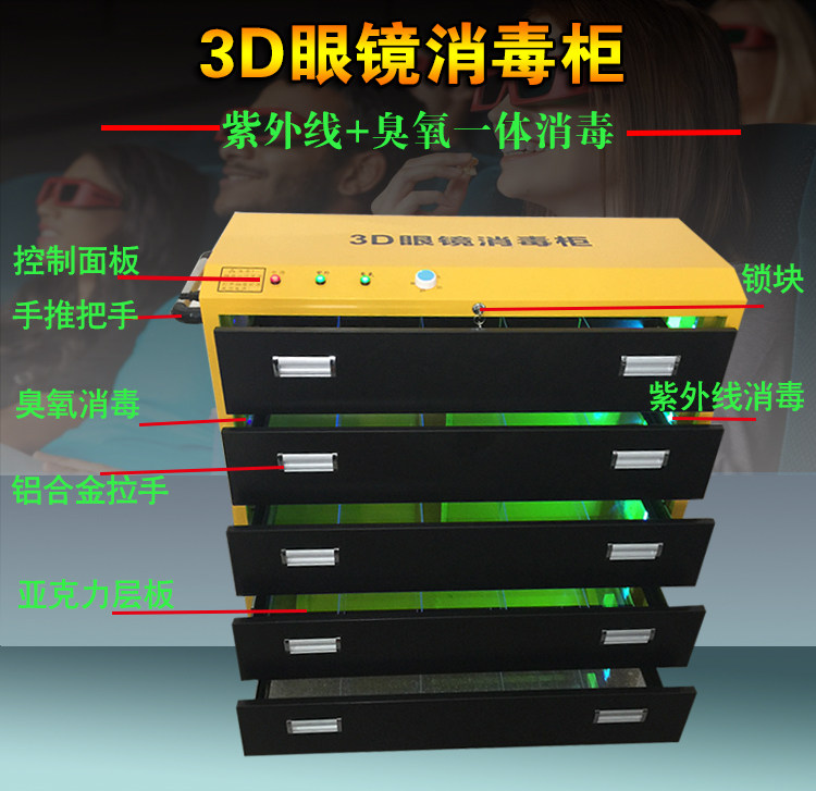 Cinema 3d glasses disinfection cabinet 4 pump 5 pump ultraviolet ozone glasses cabinet 3D glasses storage cabinet disinfection trolley