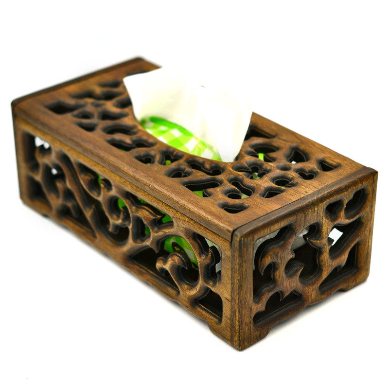 Thailand tissue box living room toilet paper box solid wood retro facial tissue box creative simple wooden napkin box carving