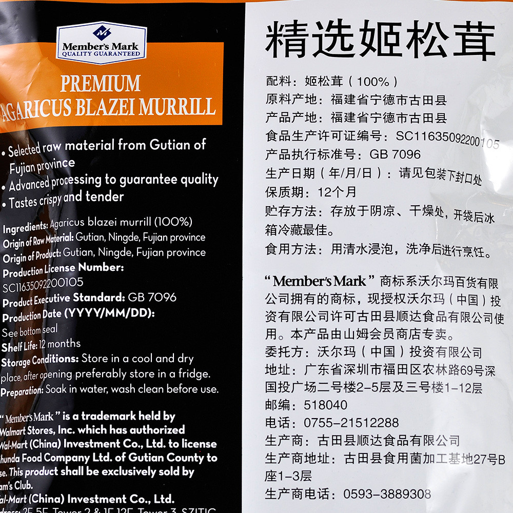 Sam Members Mark selected Ji pine furry 200g dry goods and furry mushrooms