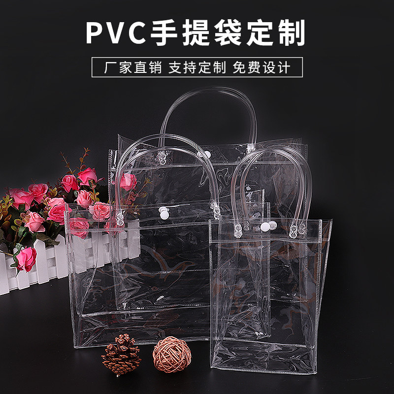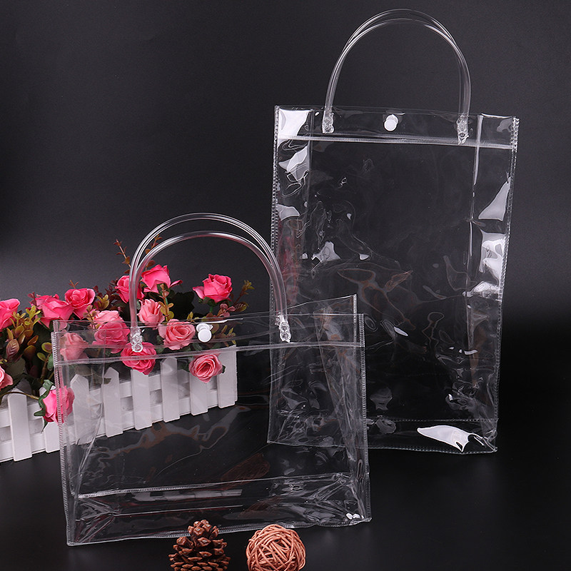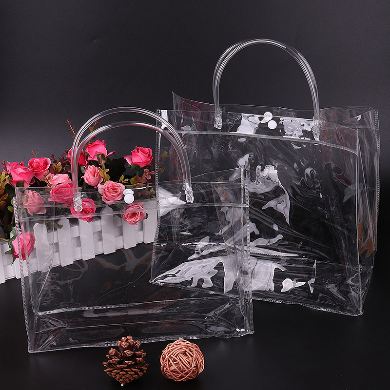 Spot gift bag plastic thicking clothing bag printing logo cosmetics PVC transparent handbag custom