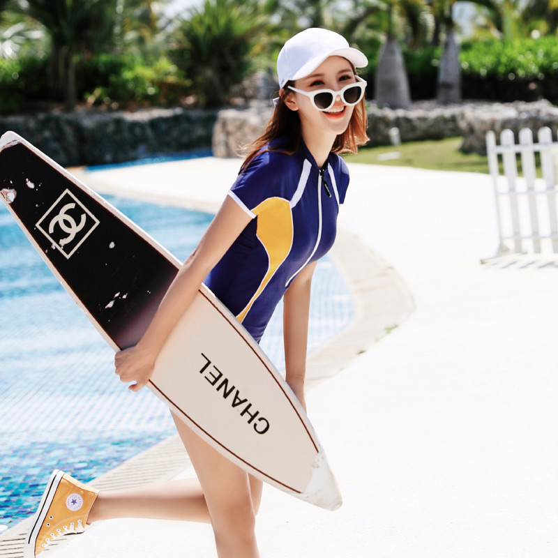 Summer new sports surf wetsuit women's large size conservative thin water ski bathing suit hot spring jumpsuit flat angle