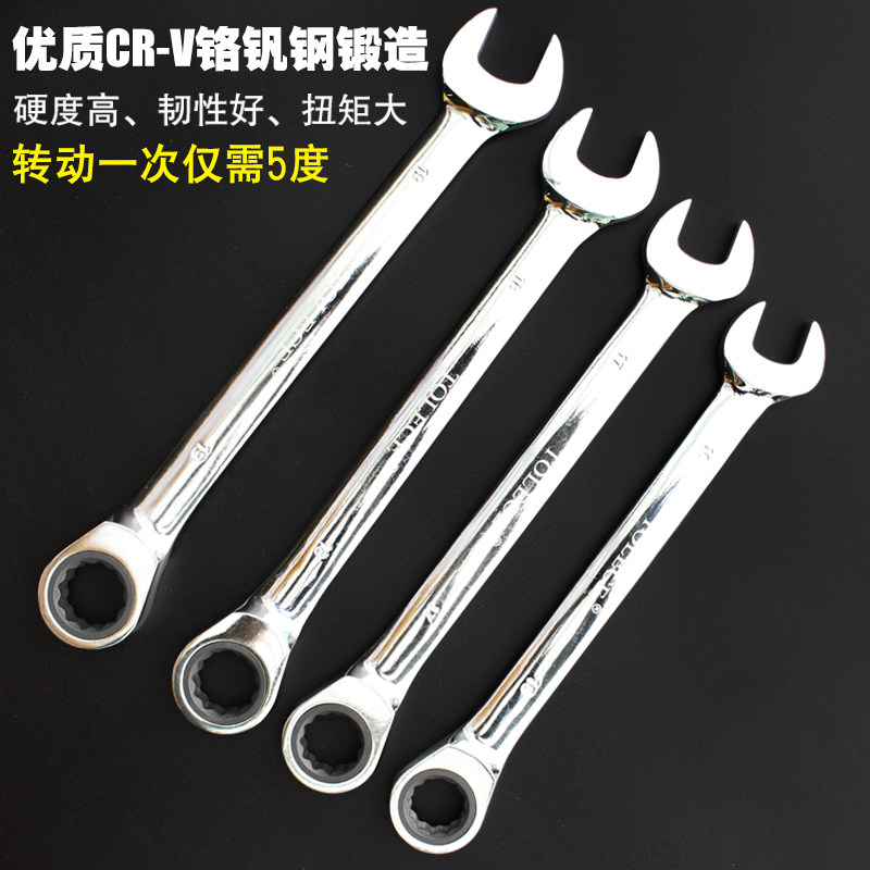 Two-use wrench with a twin wrench of 8mm ratch with a twin wrench of 9mm ratch with a twin wrench of 10mm ratch with a twin wrench of 11mm ratch with a 12mm wheel with a 12mm wheel with a wheel of 12mm ratch