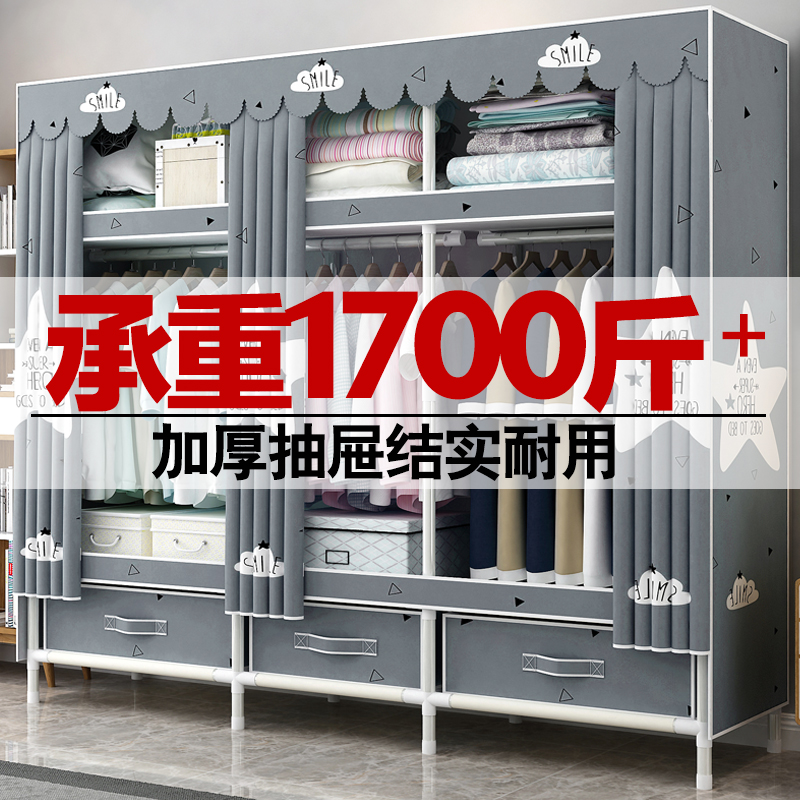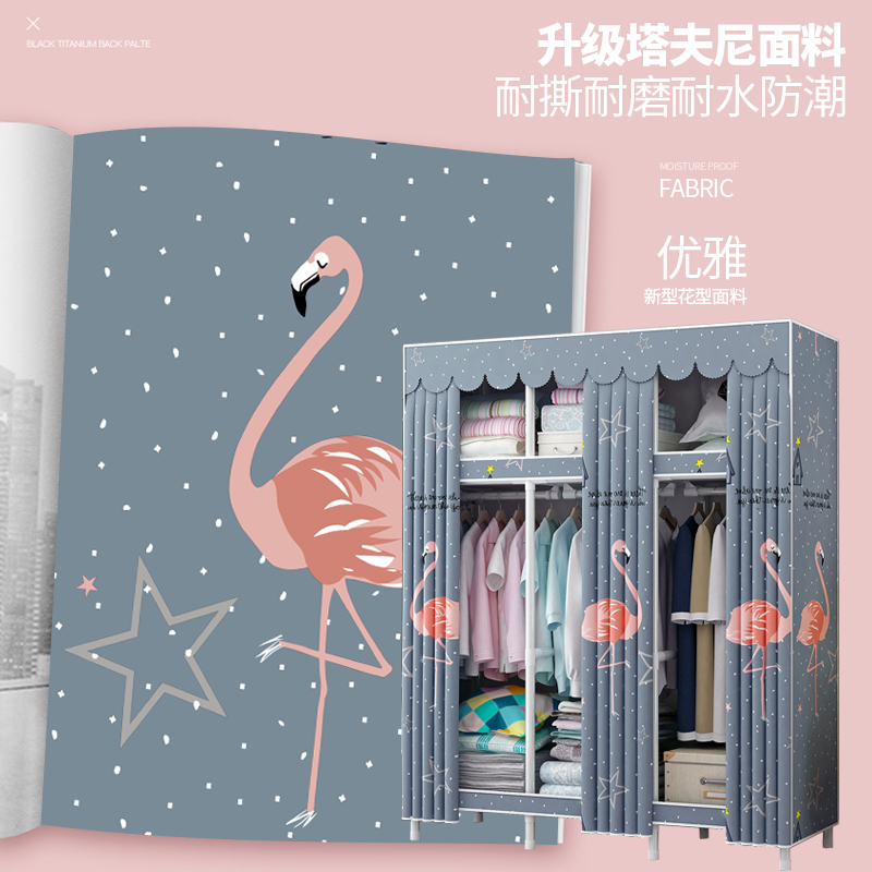 Simple cloth wardrobe steel pipe thick reinforcement all steel frame double assembly home fabric storage wardrobe dormitory wardrobe