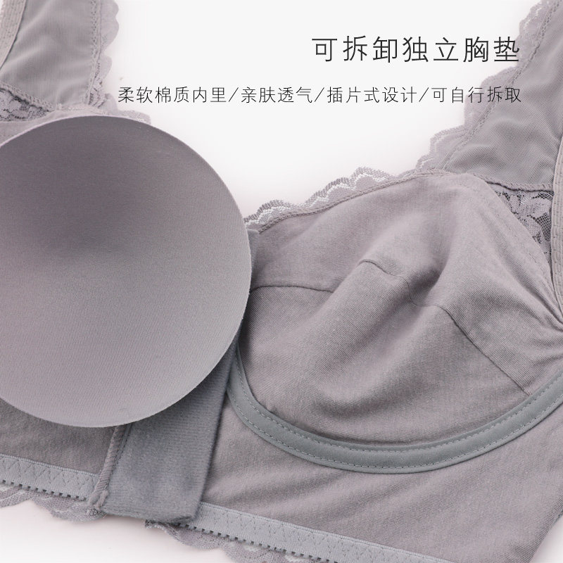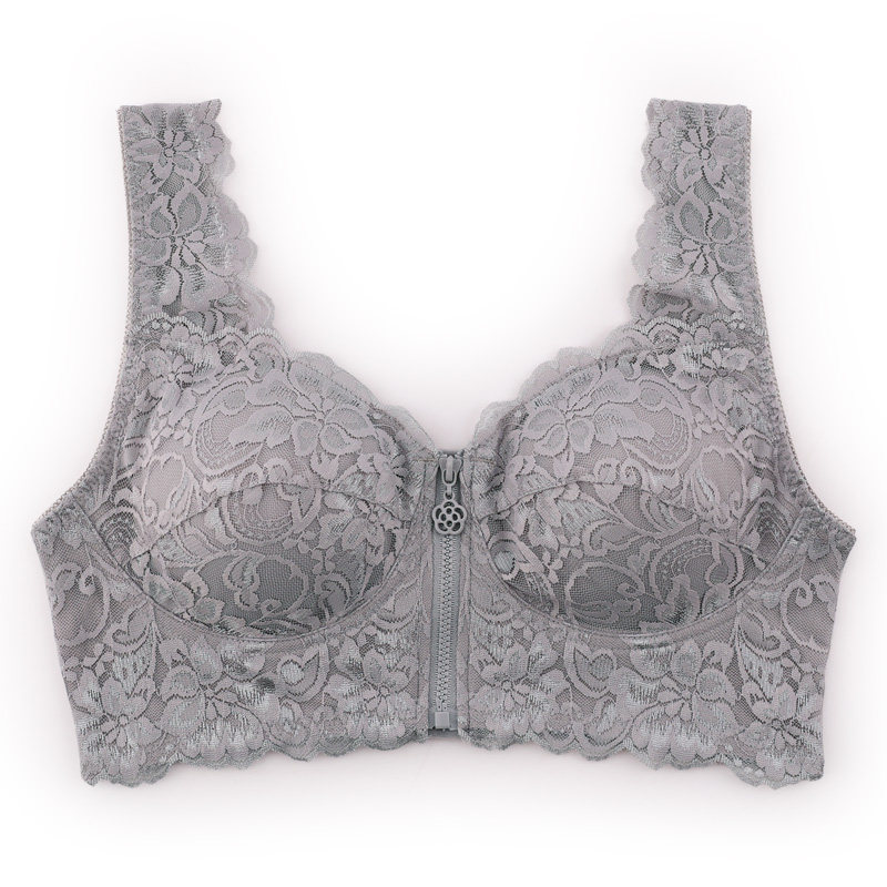 No steel ring front buckle zipper vest bra gathered sexy breast large size beautiful back thin full cup underwear