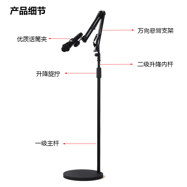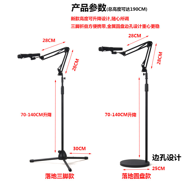Professional floor disc three-legged weighted microphone cantilever frame mobile phone direct anchor singing K song condenser microphone bracket
