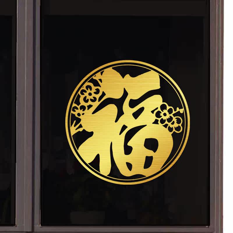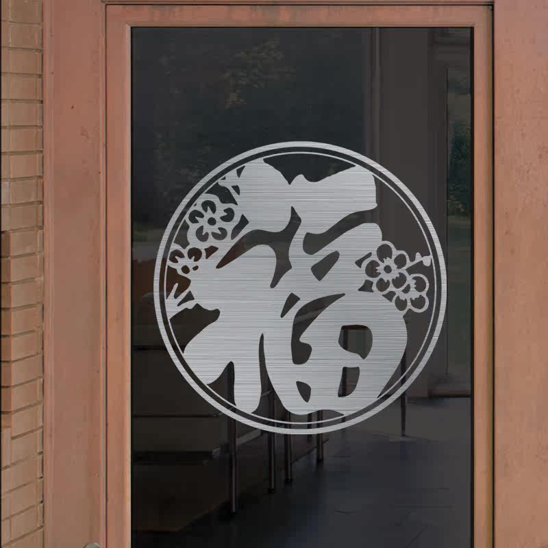 Water moon mirror flower shopping mall decoration shop glass door stickers opening window stickers layout Chinese style calligraphy and painting