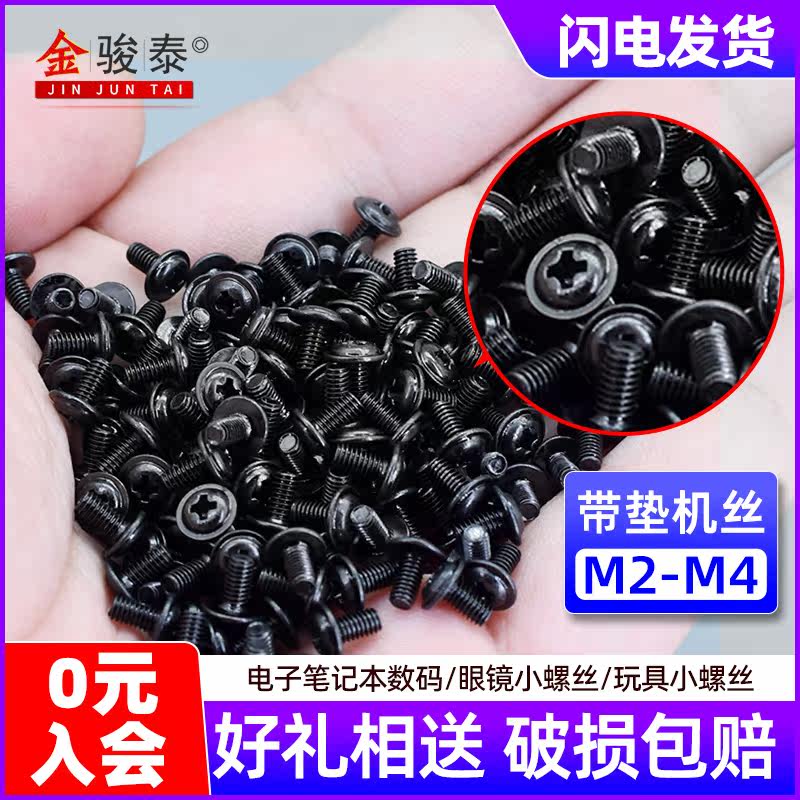 Nickel-plated cross round head with pad iron screw black chassis small screw pan head with pad screw M2M2 5 M3M4