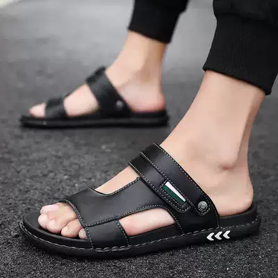 2021 new men's sandals beach trend driving outside wearing leather cool drag summer dual-use slippers men outdoor waterproof