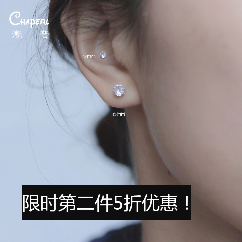 2022 new trendy ear bone small ear acupuncture fine needle female cartilage screw twist button imitation drill double ear hole super flash single male
