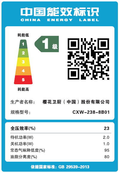 Cherry blossom CXW-238-8B01 level energy efficiency 18 cubic stereo ring suction frequency range hood