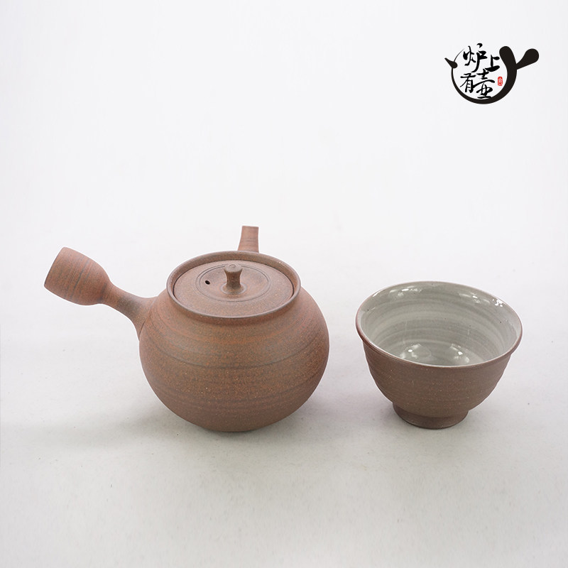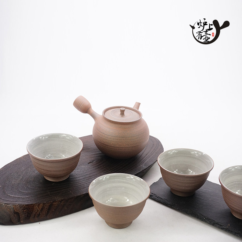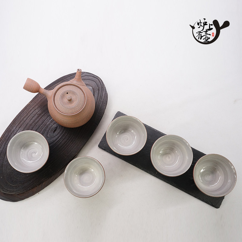 Tokoname, Japan, Shimizu source two, old Hojo Hojo hand-made pottery tea set, nine palace pots, one pot and five cups