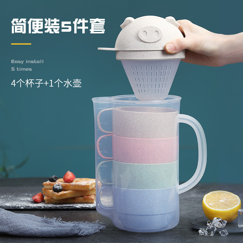 Wheat Heat Resistant High Temperature Cold Water Pot Teapot Home Suit Cool Water Cups Plastic Cold Water Pot Large Capacity Juice Pot