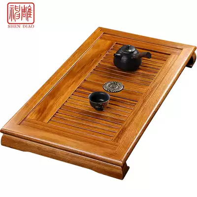 Shencarving solid wood tea tray yellow rosewood tea sea chicken wing Wood tea table household storage double water small kung fu tea set