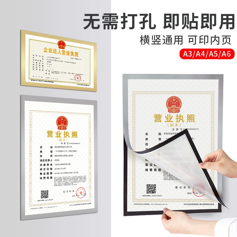 Sai brother Nadi magnetic sticker nail-free wall display sticker A3A4 business license box Production health license certificate Power of attorney Protection case Document publicity information Wall sticker