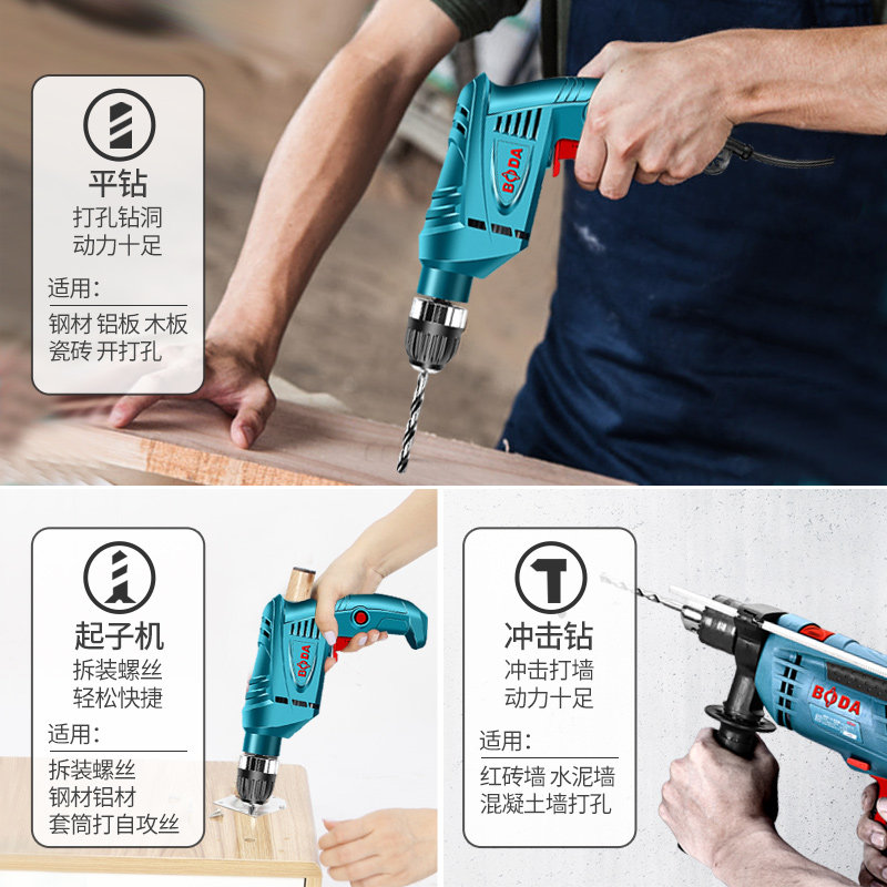 Bobig Electric Drill Electric Drill Screwdriver 220V plug-in electric transfer small home impact drill tool electric drill electric drill