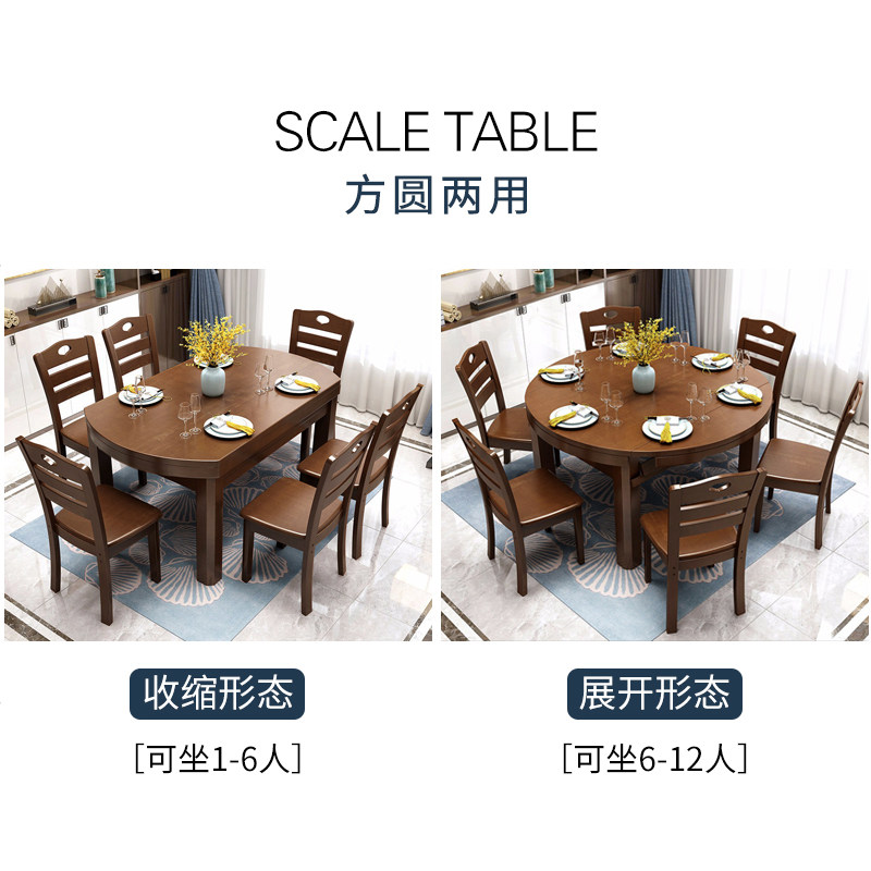 Dining table full solid wood dining table and chair combination variable round table telescopic folding modern simple small apartment dining table home