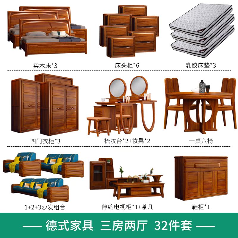 Dumao golden silk walnut 18m bed whole house bedroom complete set of furniture combination set living room study German style