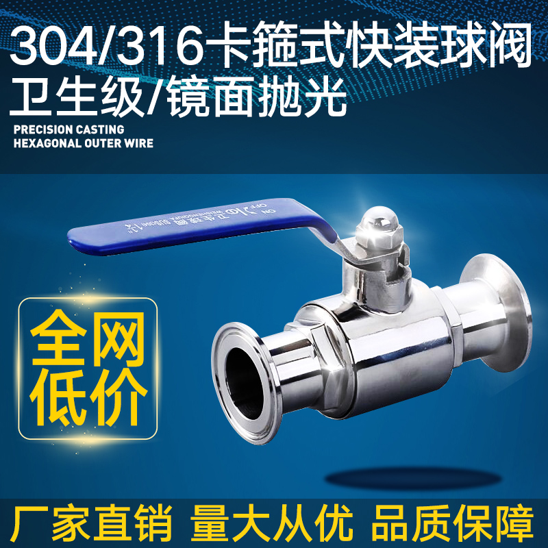 304 stainless steel sanitary ball valve-level quick-connect plate quick-loading clamp-type straight-through polished food-grade valve 4 points Q81F