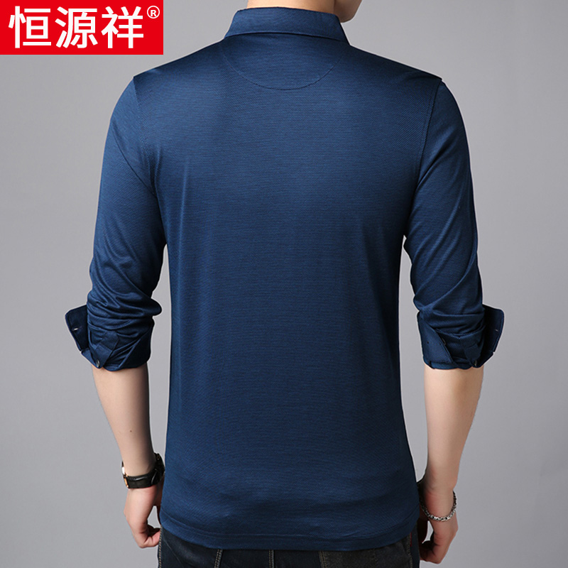 Hengyuan Xiang Men's Long sleeves T-shirt mulberry silk trend middle-aged men's casual loose POLO shirt daddy Spring loaded down