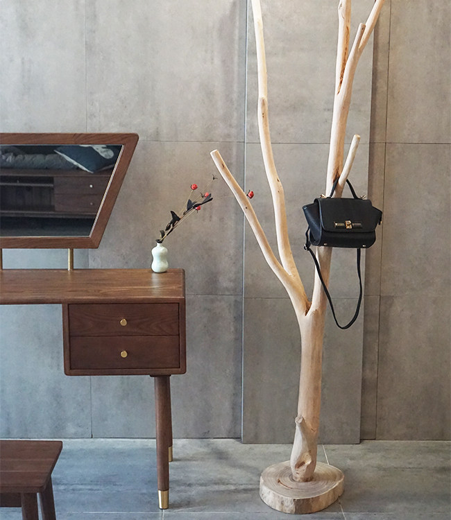 Pure natural solid wood coat hanger floor coat hanger bedroom clothes rack household simple single rod room creative hanger