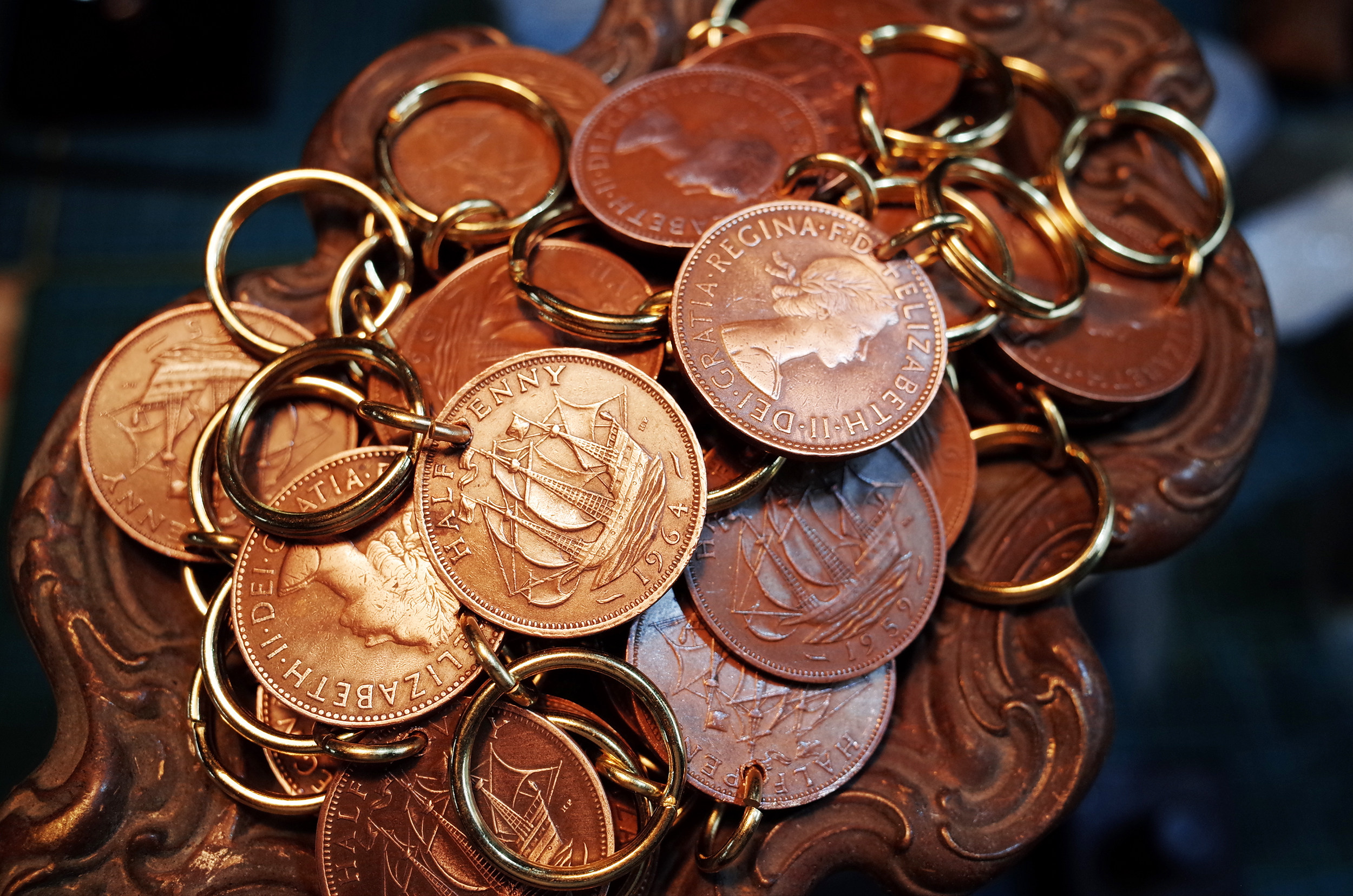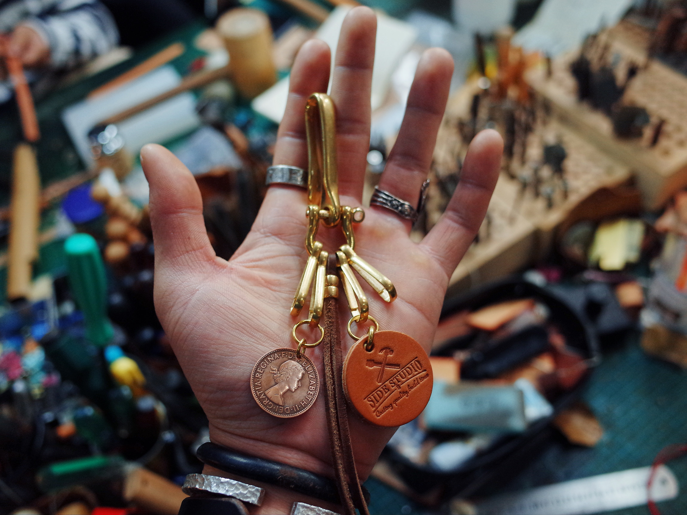 Vintage American retro Ami khaki pure copper keychain hook accessories cattle RRL motorcycle wind silver coin