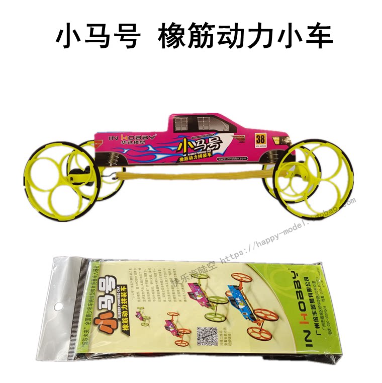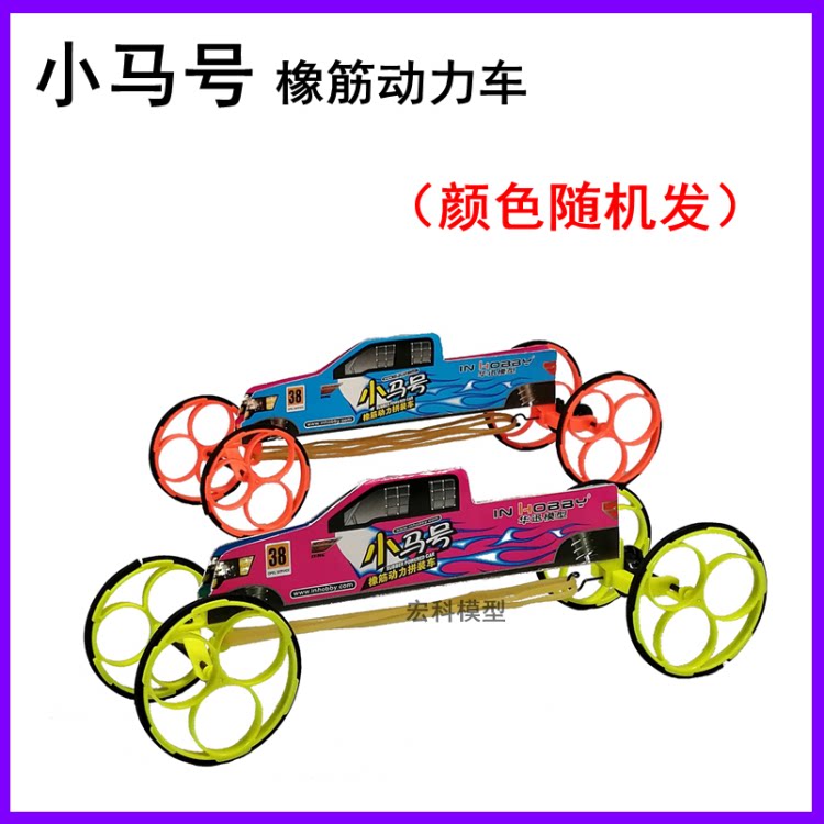 Huaxun Pony rubber band powered car model straight line car track runway Pony rubber band assembled car